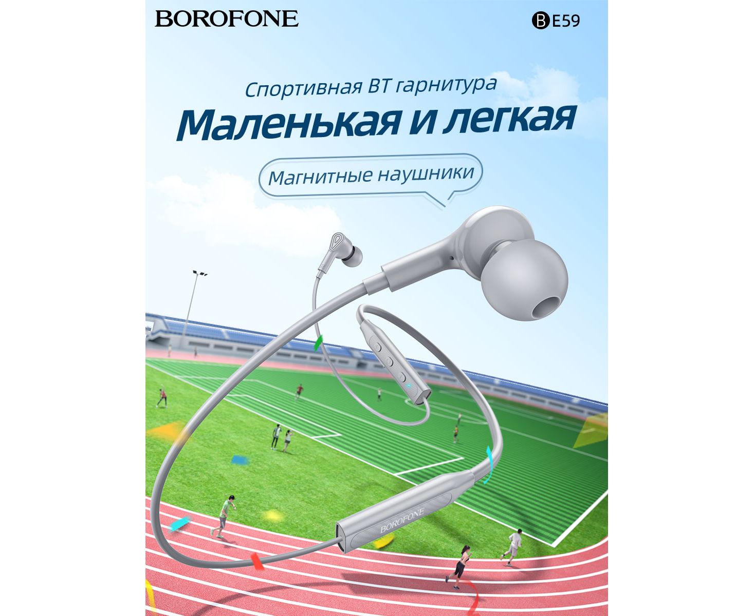 Наушники bluetooth BOROFONE BE59 Rhythm neckband BT earphones (серый)