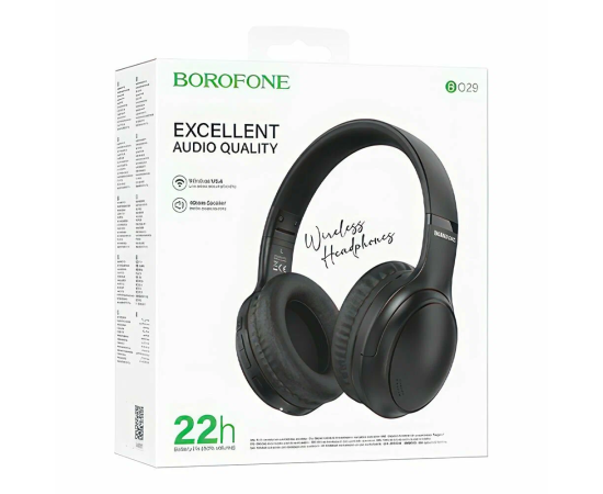 Наушники bluetooth полноразмерные BOROFONE BO29 Fascinador BT headphones (черный)