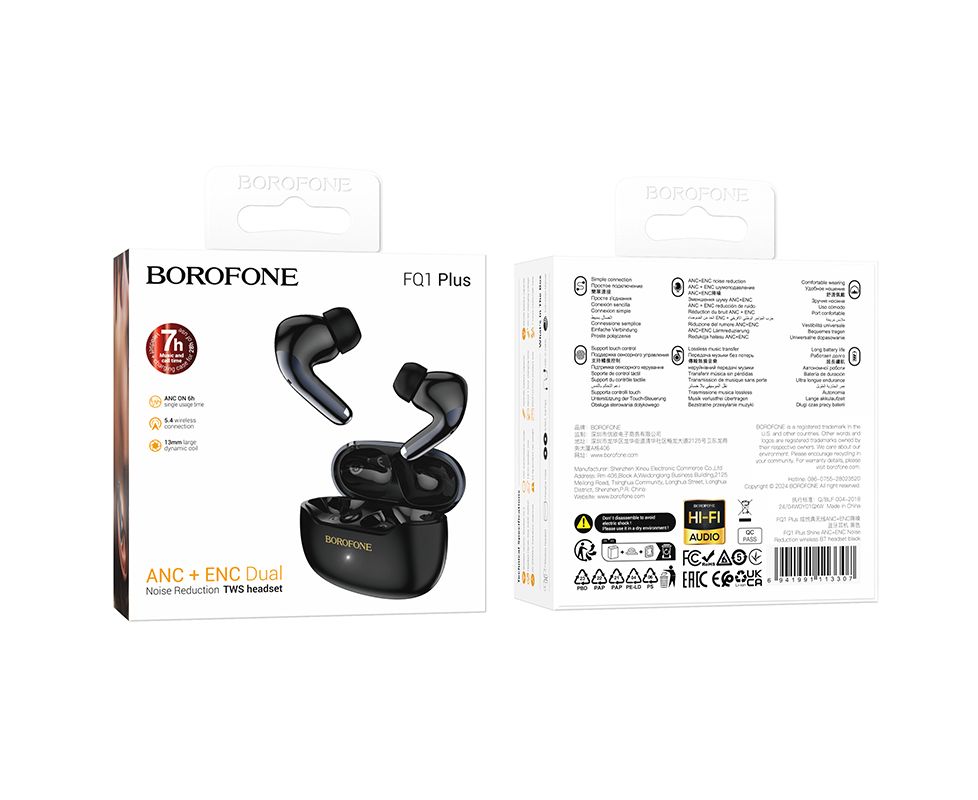 Наушники bluetooth BOROFONE FQ1 Plus Shine ANC+ENC Noise Reduction wireless (черный)
