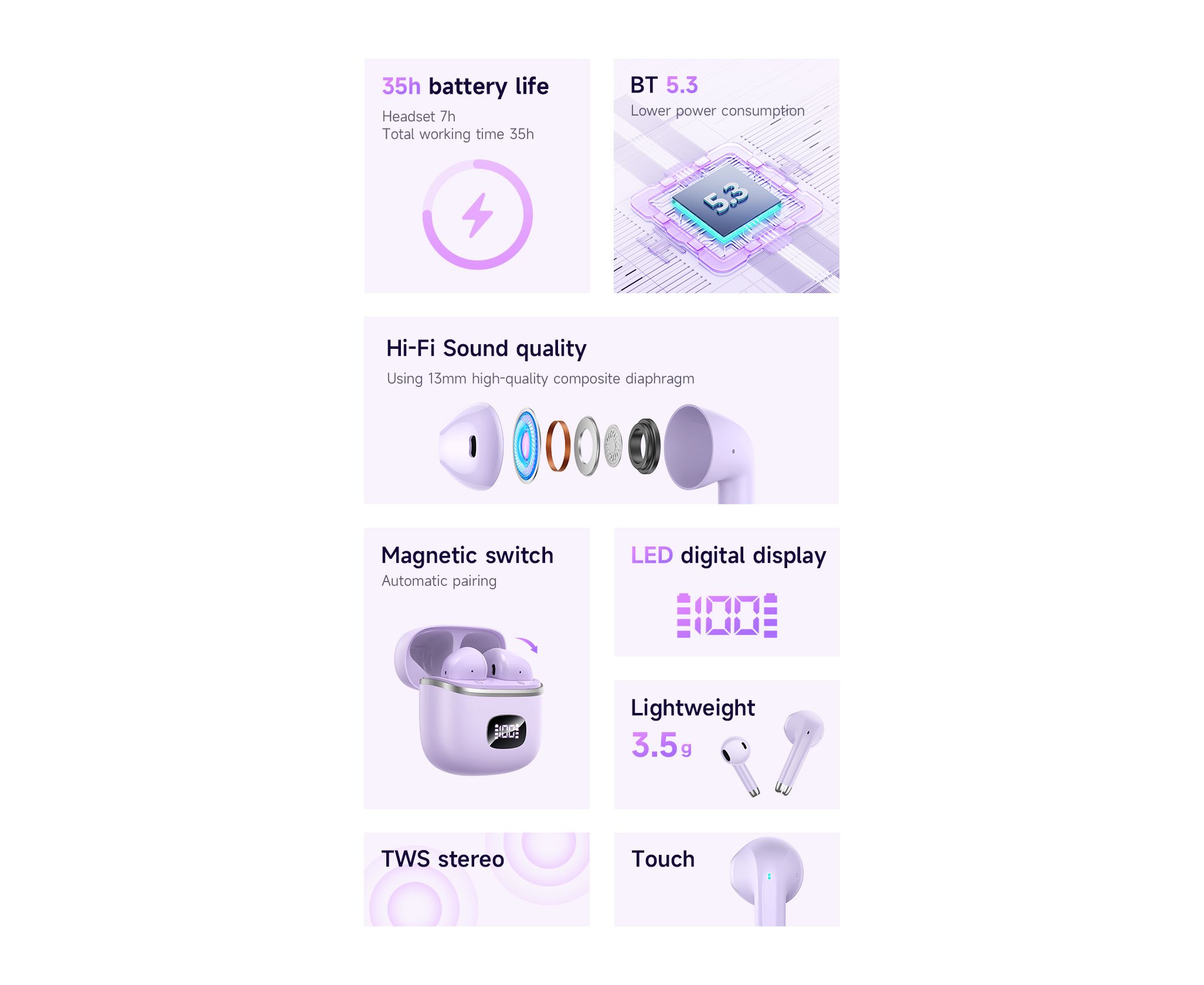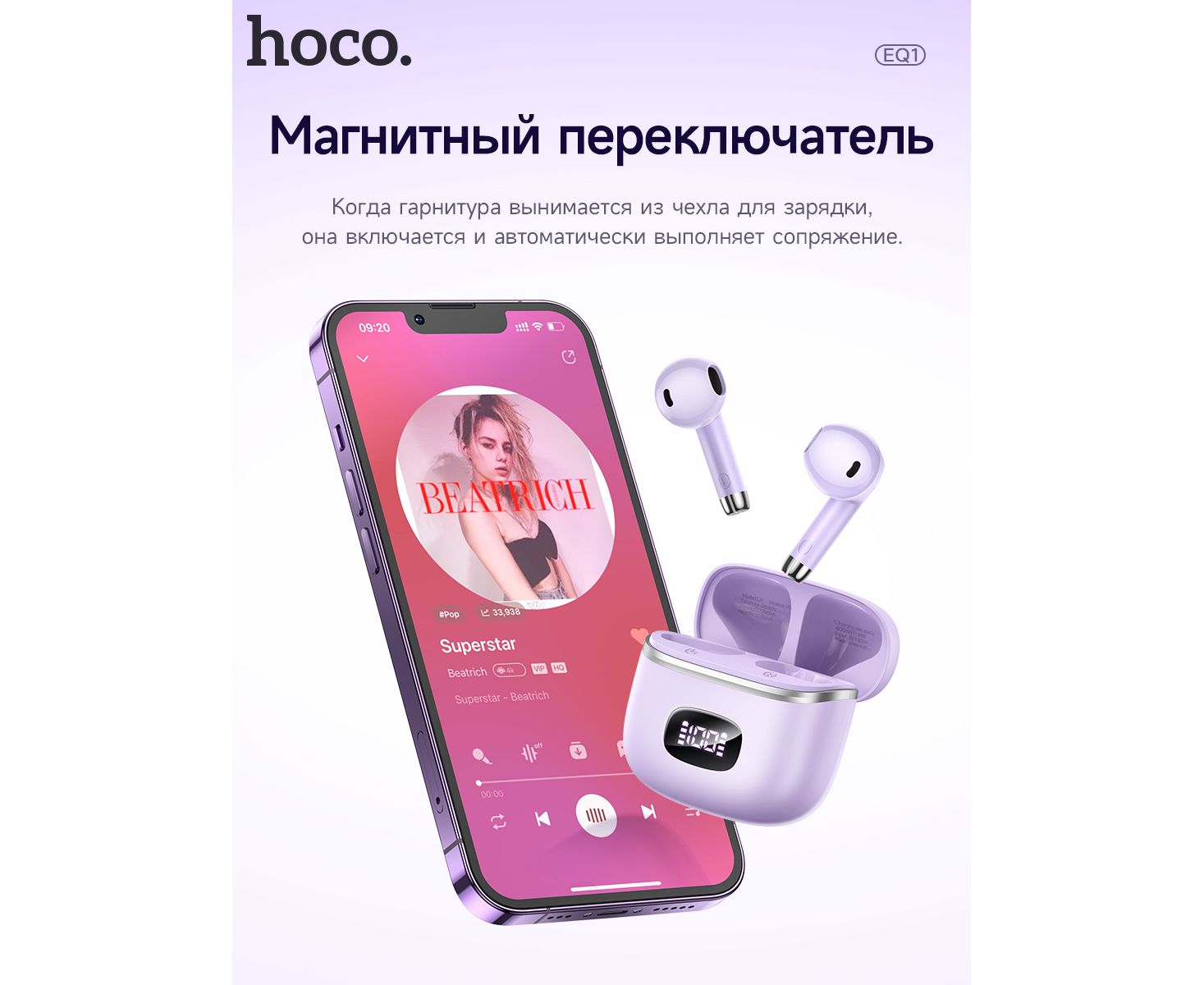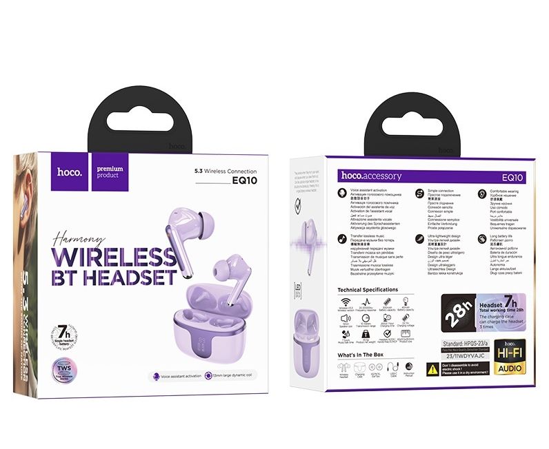 Наушники bluetooth HOCO EQ10 Harmony true wireless (фиолетовый)