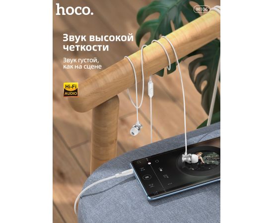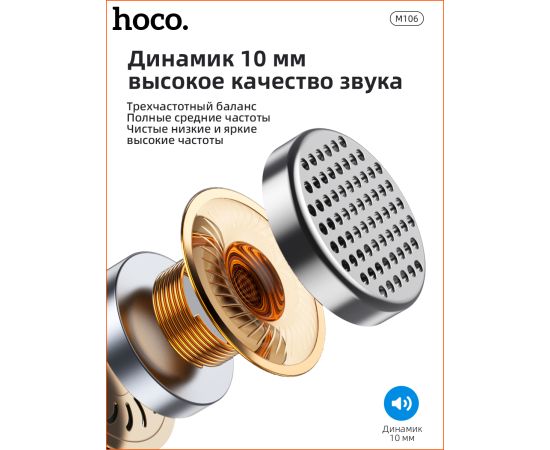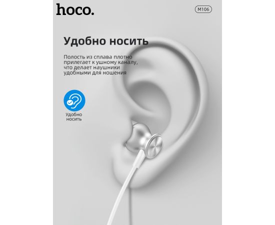 Наушники M106, Fountain metal universal earphones, HOCO, вакуумные, серебристые