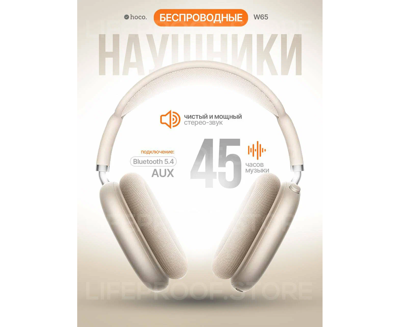 Наушники полноразмерные bluetooth HOCO W65 Happy (бежевый)