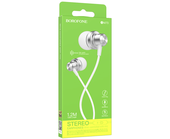 Наушники вакуумные AUX разъём с МК без рег.громкости длина 1.2м Borofone BM70 (Silver)