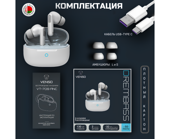 Наушники Venso VT-709 ANC белый