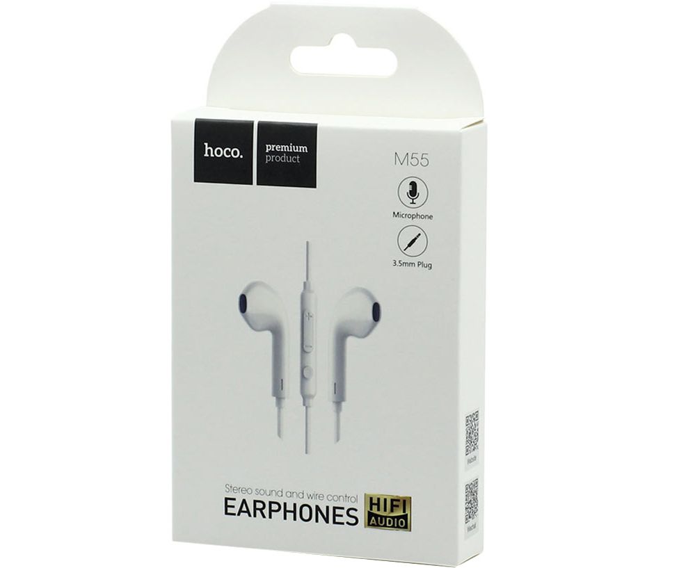 Наушники вкладыши для AUX разъёма с микрофоном длина 1.2м Hoco M55 Memory (White)