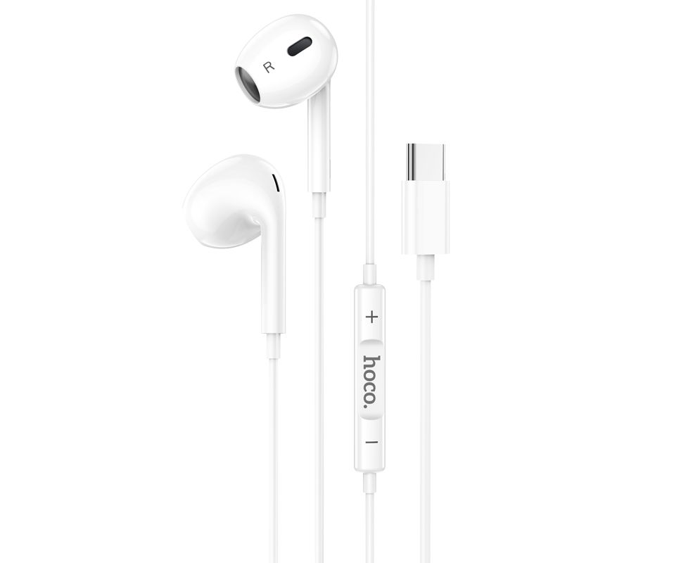 Наушники внутриканальные HOCO M101 Max Crystal, микрофон, кнопка ответа, регулятор громкости, кабель Type-C, цвет: белый (1/144/864)