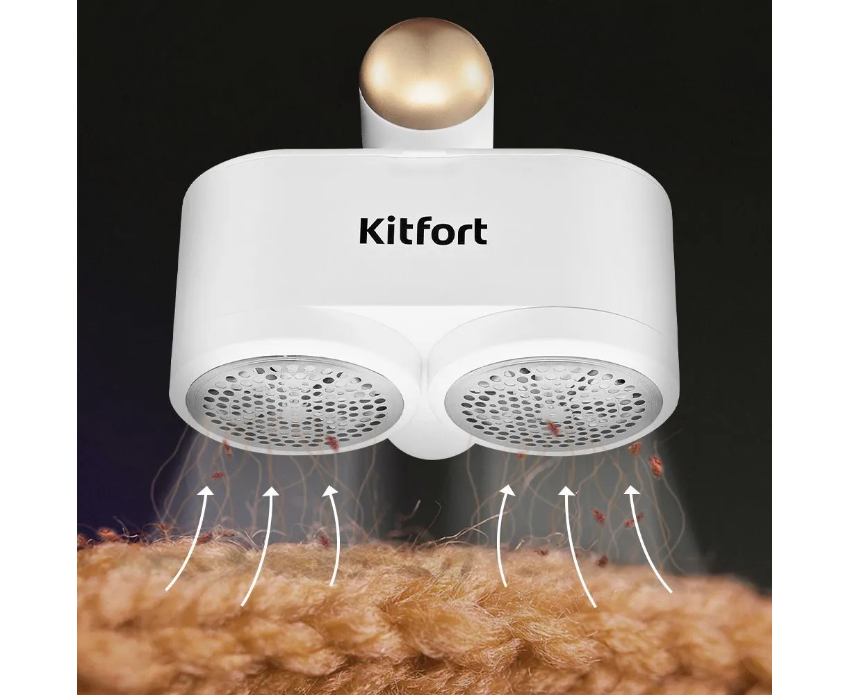 Очиститель катышков Kitfort KT-6480 имеет два блока ножей, которые захватывают большую площадь ткани, чем обычный очиститель. Удаление катышков с прибором происходит быстрее и в два раза эффективнее!