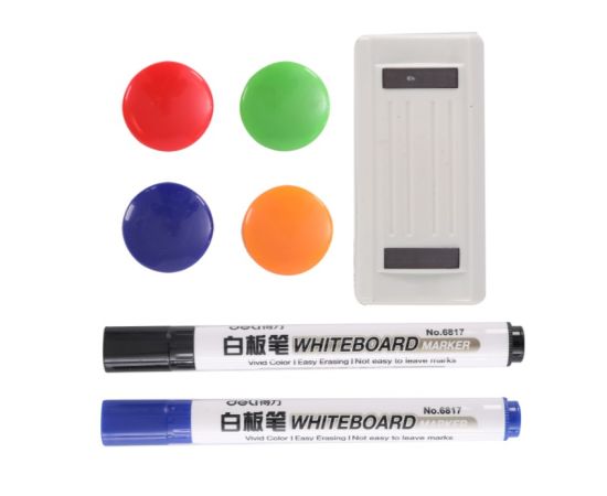 Комплектация 2 маркера, 4 магнита, полка для маркеров, щетка