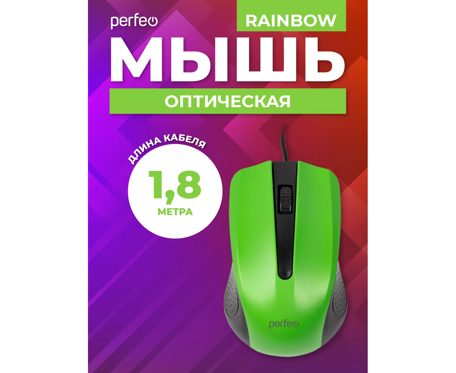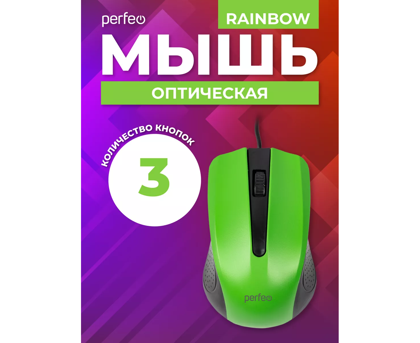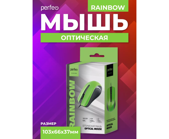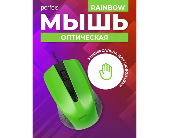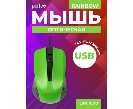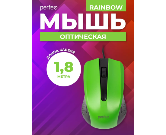 Оптическая мышь Perfeo "RAINBOW", 3 кн, USB, чёрный/зелёный, (Арт. PF_3442)