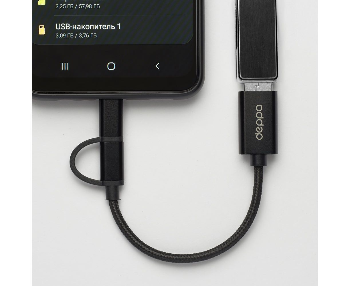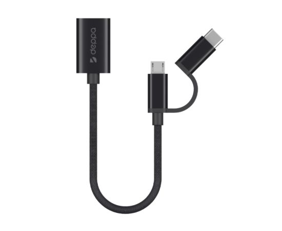OTG адаптер USB - micro USB + USB-C, алюминий, нейлон, 0.15 м, черный, DEPPA, 72319