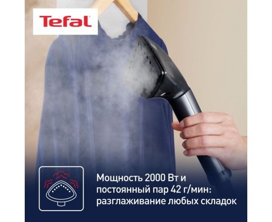 Для фиксации текстильных изделий модель оснащена вешалкой. Благодаря противокапельной системе на вещах не образуются мокрые пятна. Вертикальный отпариватель Tefal IT8480E1 мощностью 2000 Вт готов к использованию через 45 секунд после включения. Для обработки большого количества одежды без остановки в устройстве предусмотрен резервуар для воды объемом 1,3 л. Съемная конструкция облегчает наполнение. Регулируемая по высоте телескопическая стойка делает процесс отпаривания более удобным. Для безопасной эксплуатации в комплекте поставляется термостойкая рукавица.