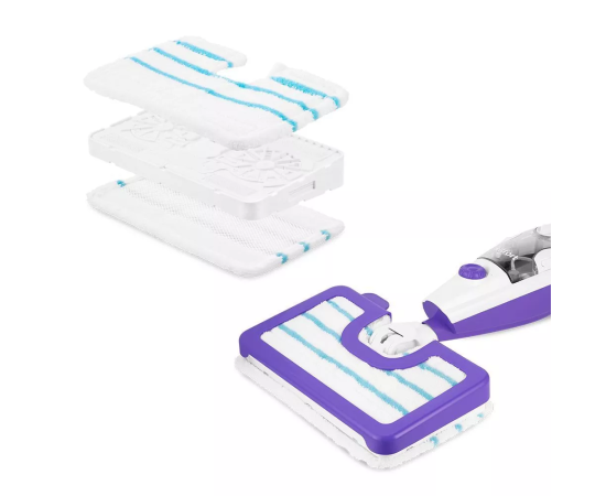 Тряпки для пола устанавливается на напольную щётку с двух сторон с помощью липучек. Их можно стирать в стиральной машине в тёплой воде. В комплекте есть рамка для ковра, которая обеспечивает лёгкое скольжение щётки во время чистки.