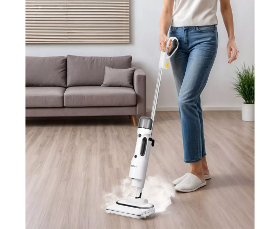 Паровая швабра «2 в 1» КТ-1062 — универсальное устройство, которое поможет избавиться от пыли и грязи с помощью мощной струи пара и продезинфицирует поверхность. Паровая швабра очистит раковину и плиту на кухне, зеркала и мебель исключительно паром.