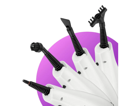 В комплекте предусмотрено множество насадок для различного использования. Спица для чистки предназначена для удаления загрязнений в паровом сопле ручного модуля и насадок.