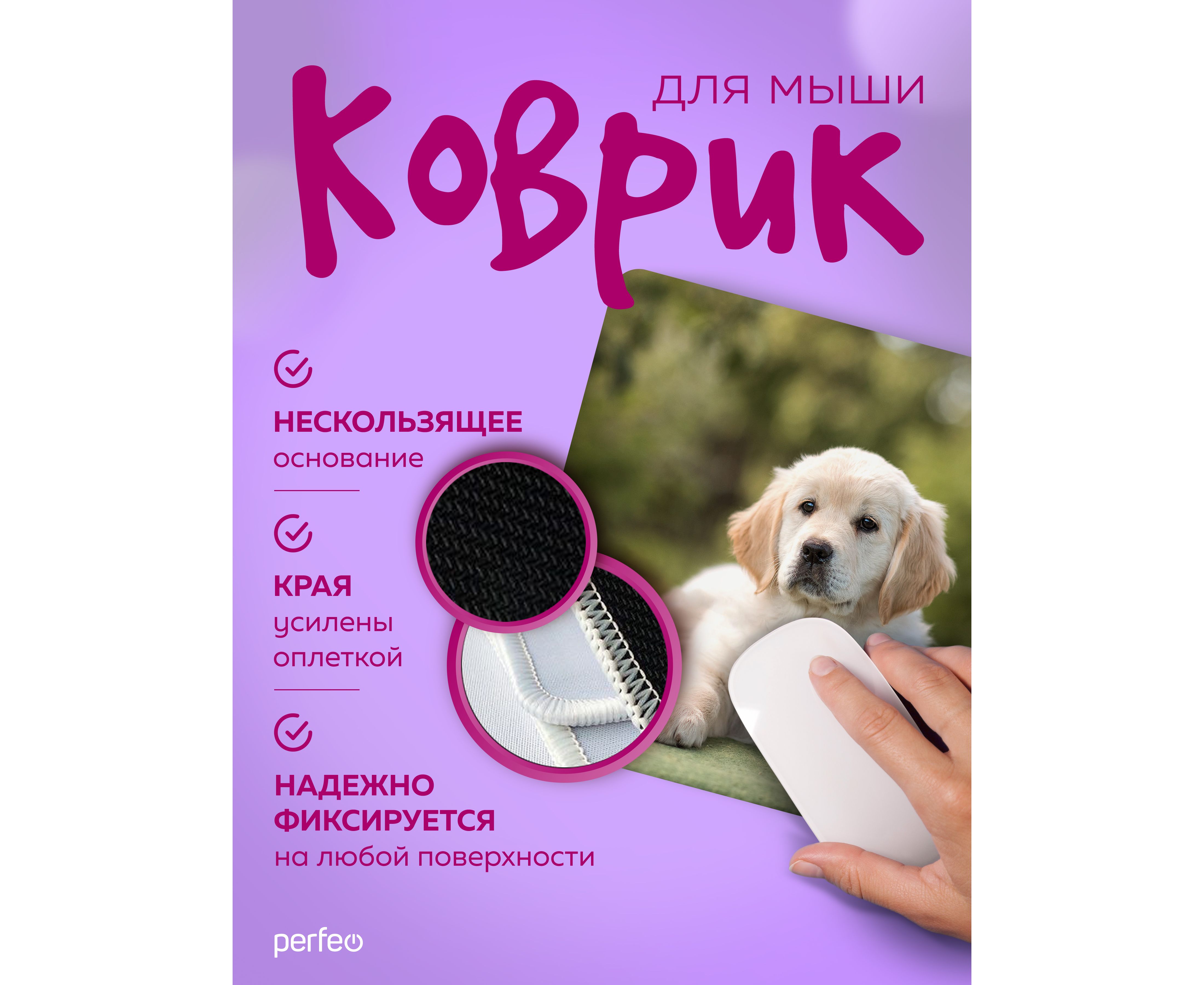 Компьютерный коврик для мыши из серии DOG обладает гладкой тканевой поверхностью, которая обеспечивает точность и плавность движения - мышь скользит быстро и четко. Оверлочная строчка по краю увеличивает износостойкость и срок службы. Нескользящая резиновая основа надёжно фиксирует коврик на столе. Небольшой вес и хорошая гибкость позволят Вам взять коврик для мыши куда угодно для комфортного пользования ноутбуком. Качественный принт будет вас долгое время радовать. Подходит для оптических и лазерных мышей с любой чувствительностью и любым типом сенсора.