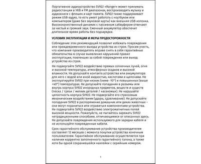 Проверено временем! Отмеченный наградами приёмник SOUND RANGER отлично ловит радиостанции в УКВ и FM диапазонах. А также поддерживает воспроизведение MP3-файлов и умеет работать как внешняя USB-колонка с цифровой передачей звука! Поддержка УКВ и FM. Выдвижная антенна. Съемный аккумулятор на 10-12 часов автономной работы Пассивный сабвуфер BassBooster. Поддержка USB-аудио. Эквалайзер и два режима повтора для MP3. Гнездо для наушников 3,5 мм. Адаптер 230 В - в комплект не входит.