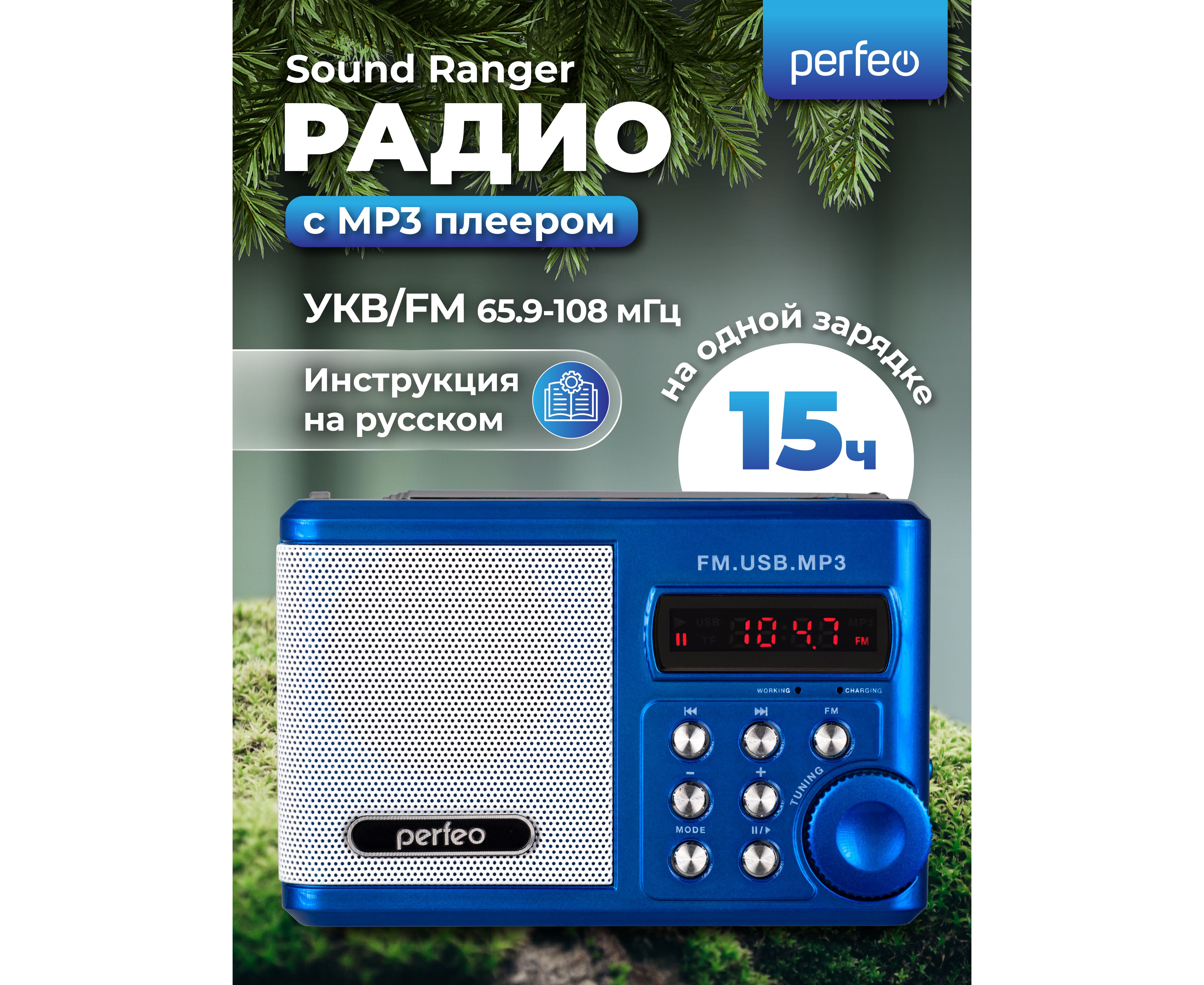 Радиоприемник цифровой Perfeo Sound Ranger, УКВ+FM, MP3 (USB/TF), USB-audio, BL-5C 1000mAh, синий (SV922BLU), (Арт. PF_3183)