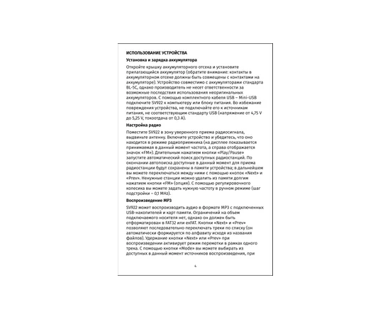 Инструкция - 1 шт; Гарантийный талон - 1; Кабель Mini USB - 1 шт; Радиоприемник - 1шт