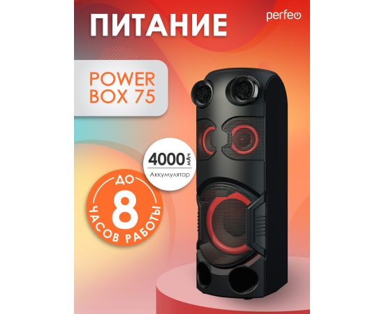 Портативная акустическая система Perfeo ”Power Box 75” EQ, MP3 USB/microSD, AUX, FM, 2xMIC, TWS черная