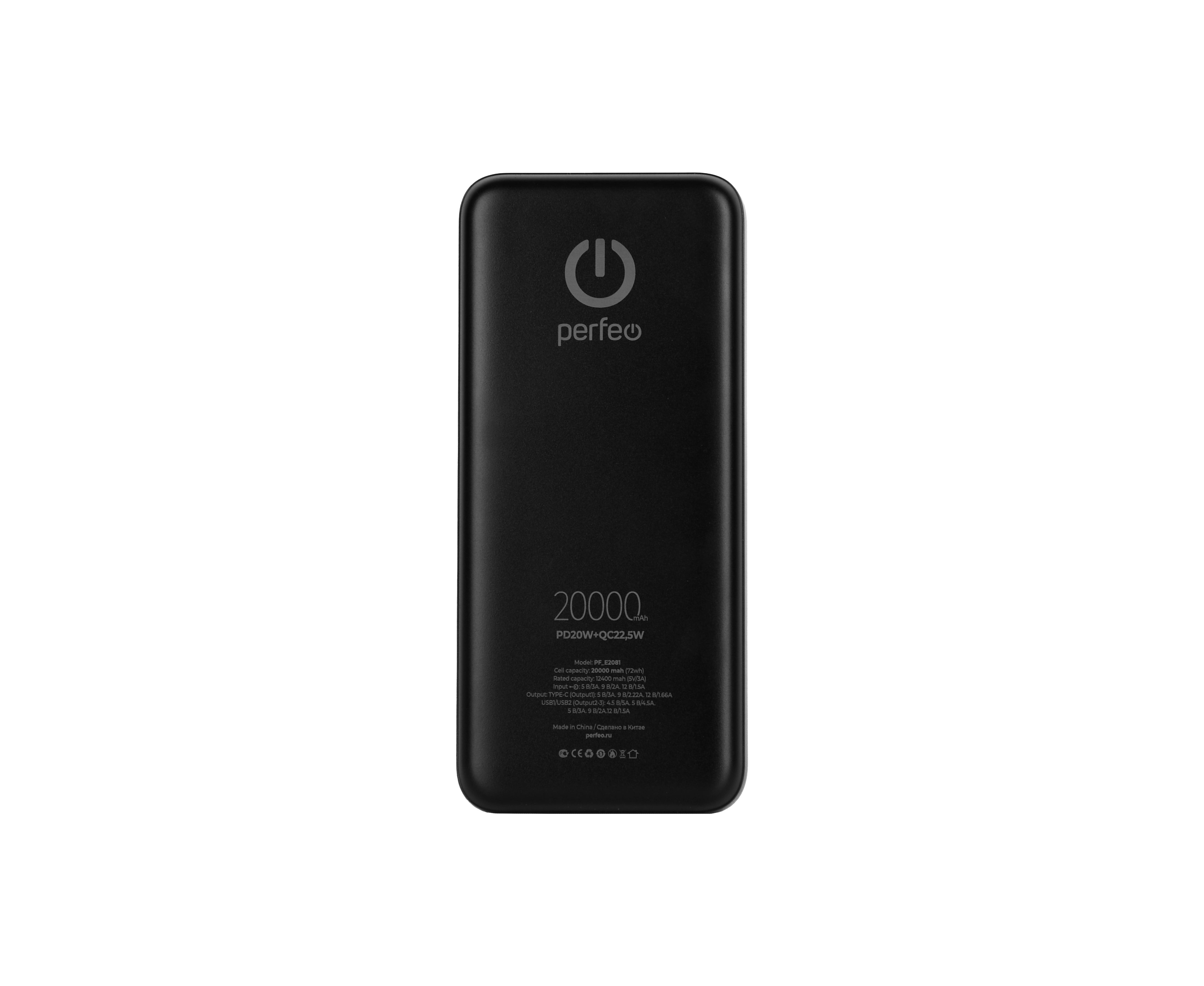 Повербанк Perfeo 20000 mAh/LED дисплей/PD + QC 3.0/Type-C/2 USB/Выход: 5A, max 22.5W/ Черный