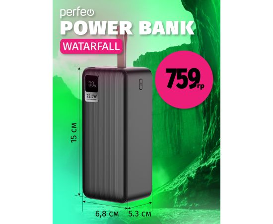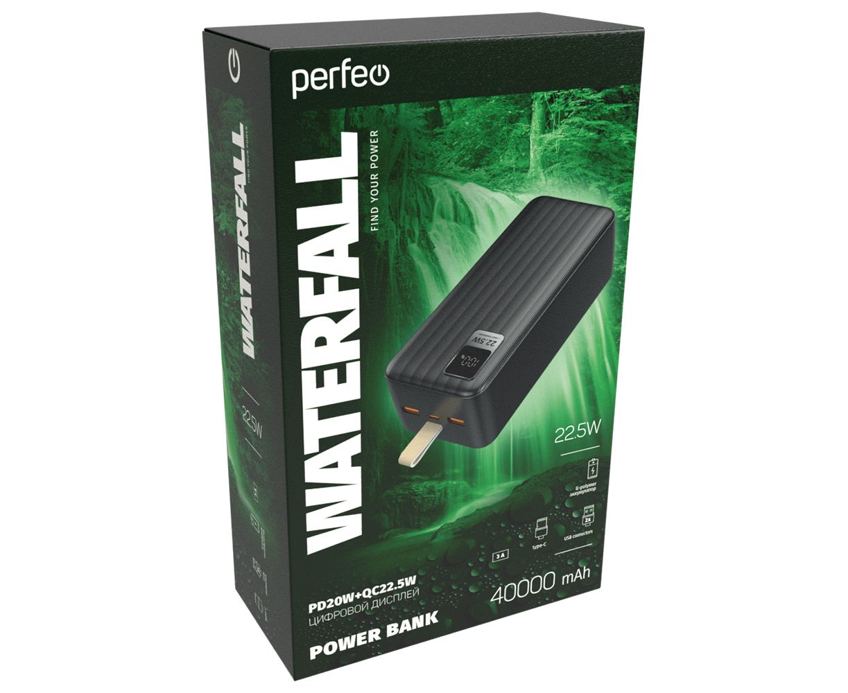 Повербанк Perfeo Powerbank 40000 mAh/LED дисплей/PD + QC 3.0/Type-C/2 USB/Выход: 5A, max 22.5W/черный