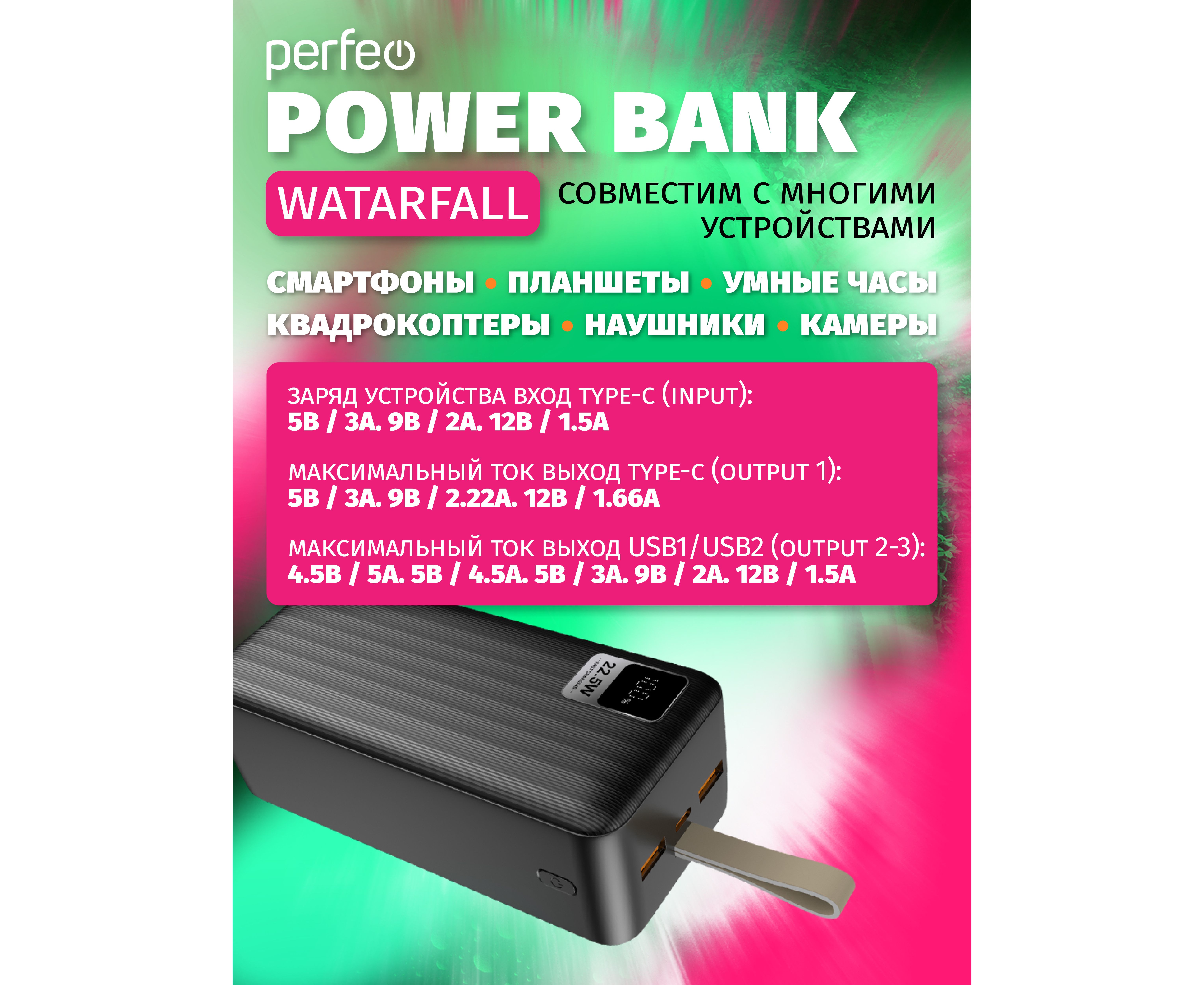 Выходы Type-C и USB обеспечат быструю зарядку ваших устройств с поддержкой QC3.0. и PD 22.5W