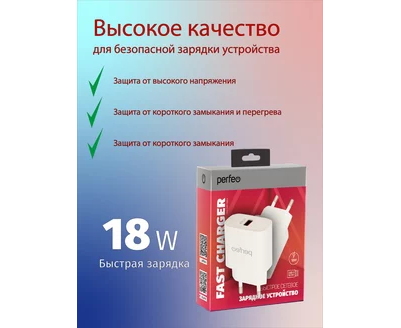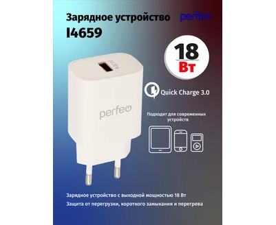 Сетевое зарядное устройство PERFEO с разъемом USB, QC3.0, 18W, белый