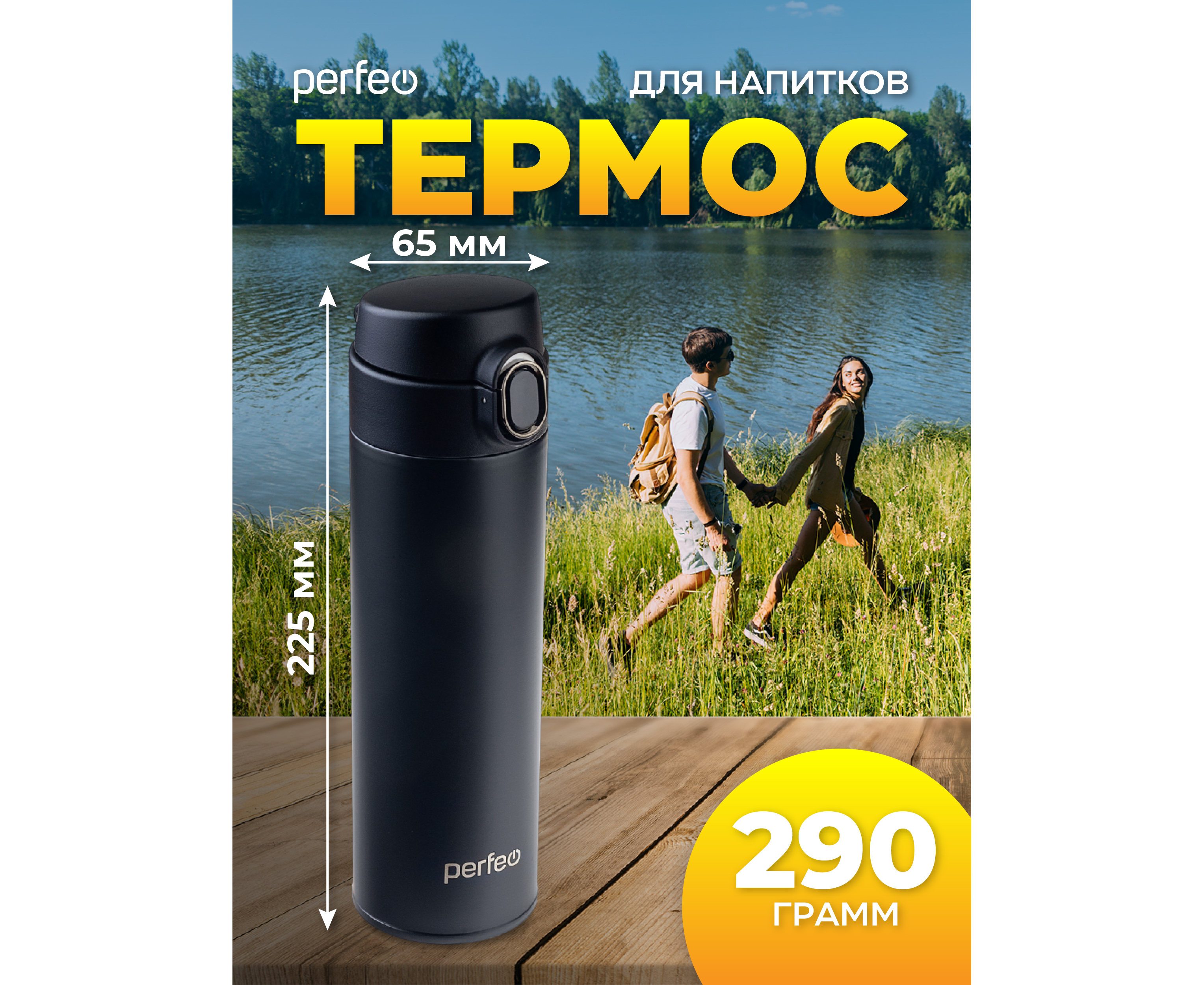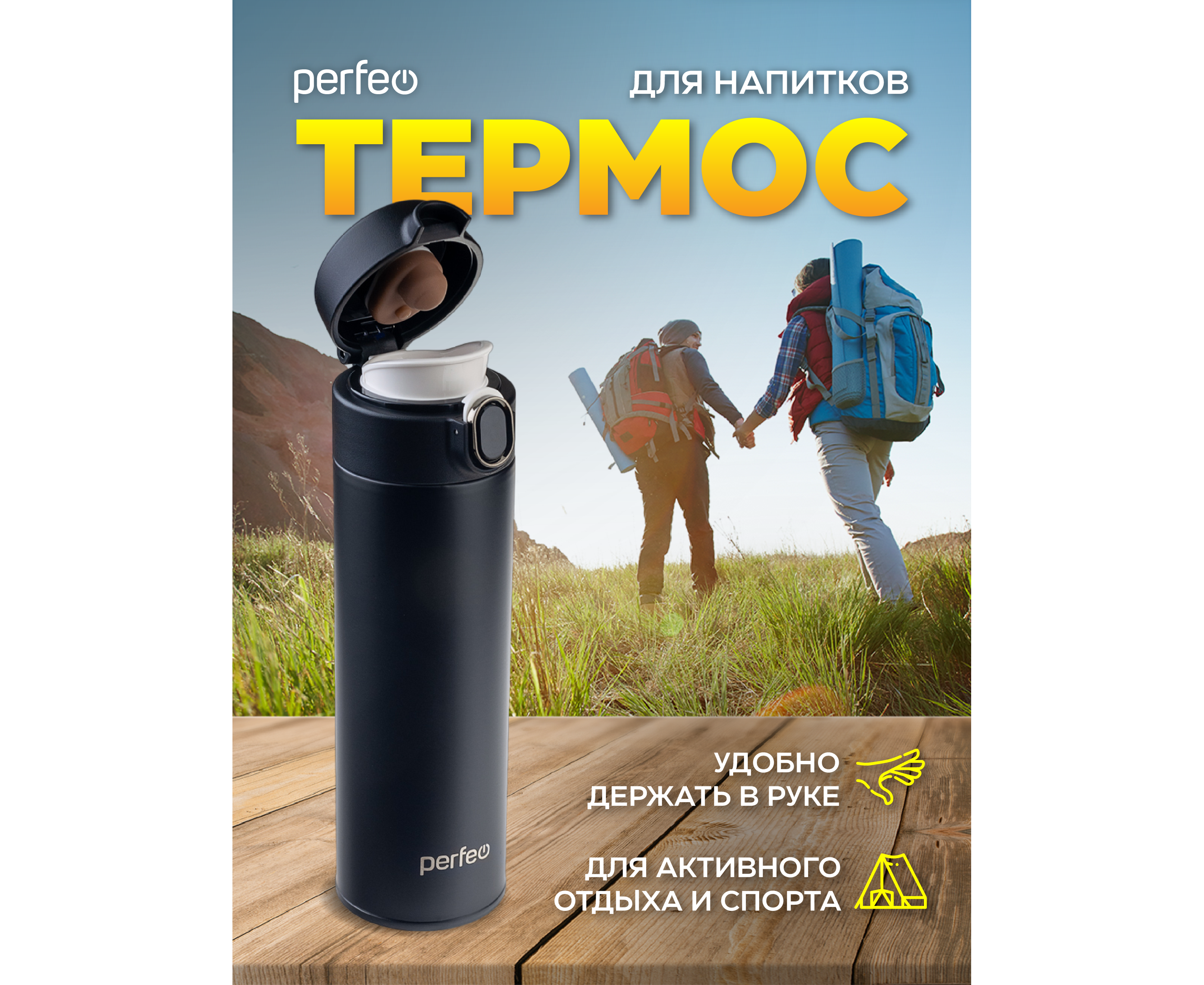 Термос для напитков PERFEO с крышкой-поилкой, объем 0,5 л., черный, (Арт. PF_D0207)