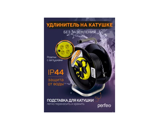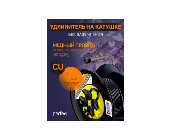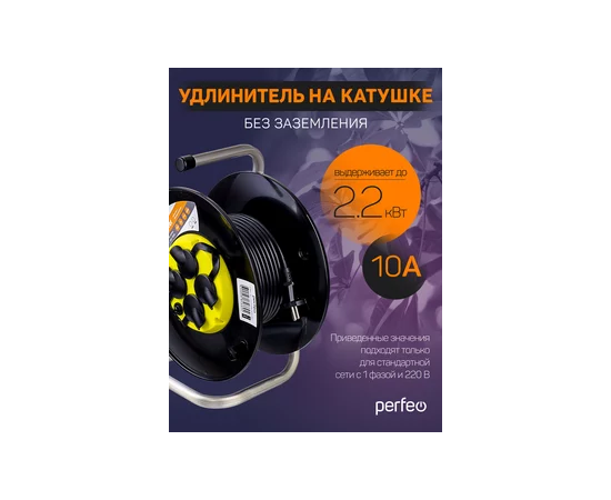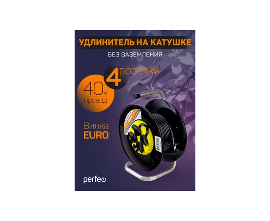 Удлинитель на катушке без заземления Perfeo "RU POWER" 40м 4гн с т/з 10А ПВС 2х1 IP44 (РБК16).