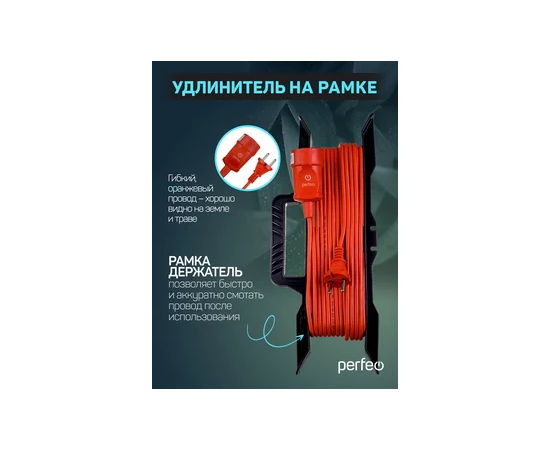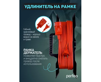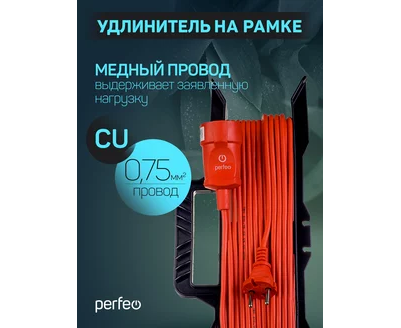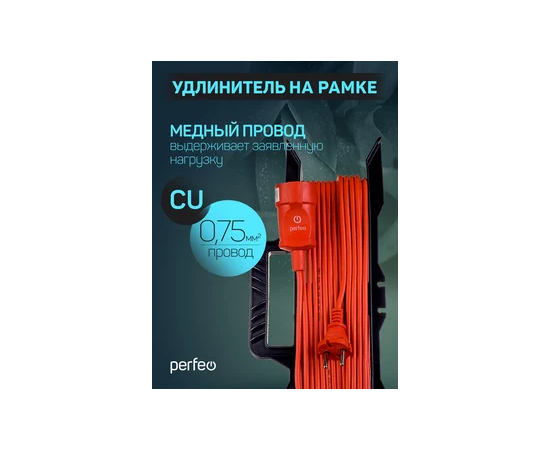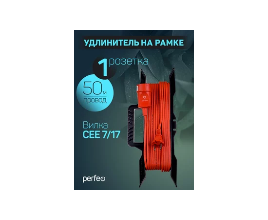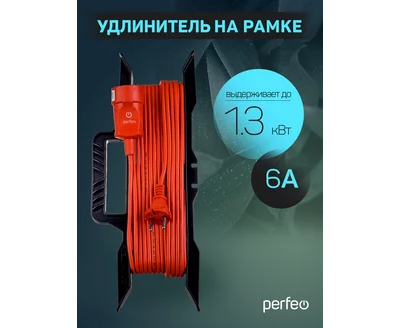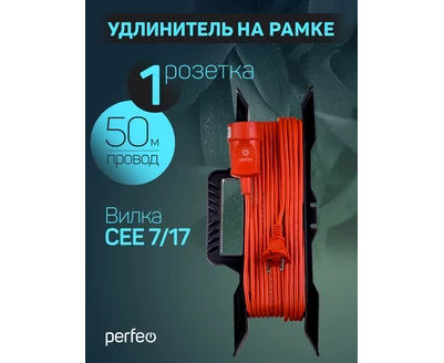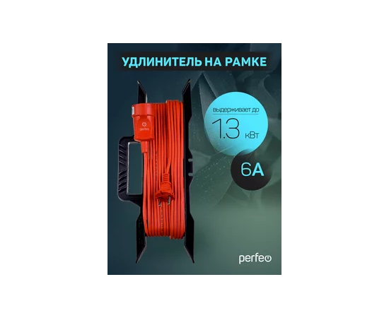 Удлинитель на рамке без заземления Perfeo "RU POWER" 50м 1гн 6А ПВС 2х0,75 (УХ6-101), оранжевый