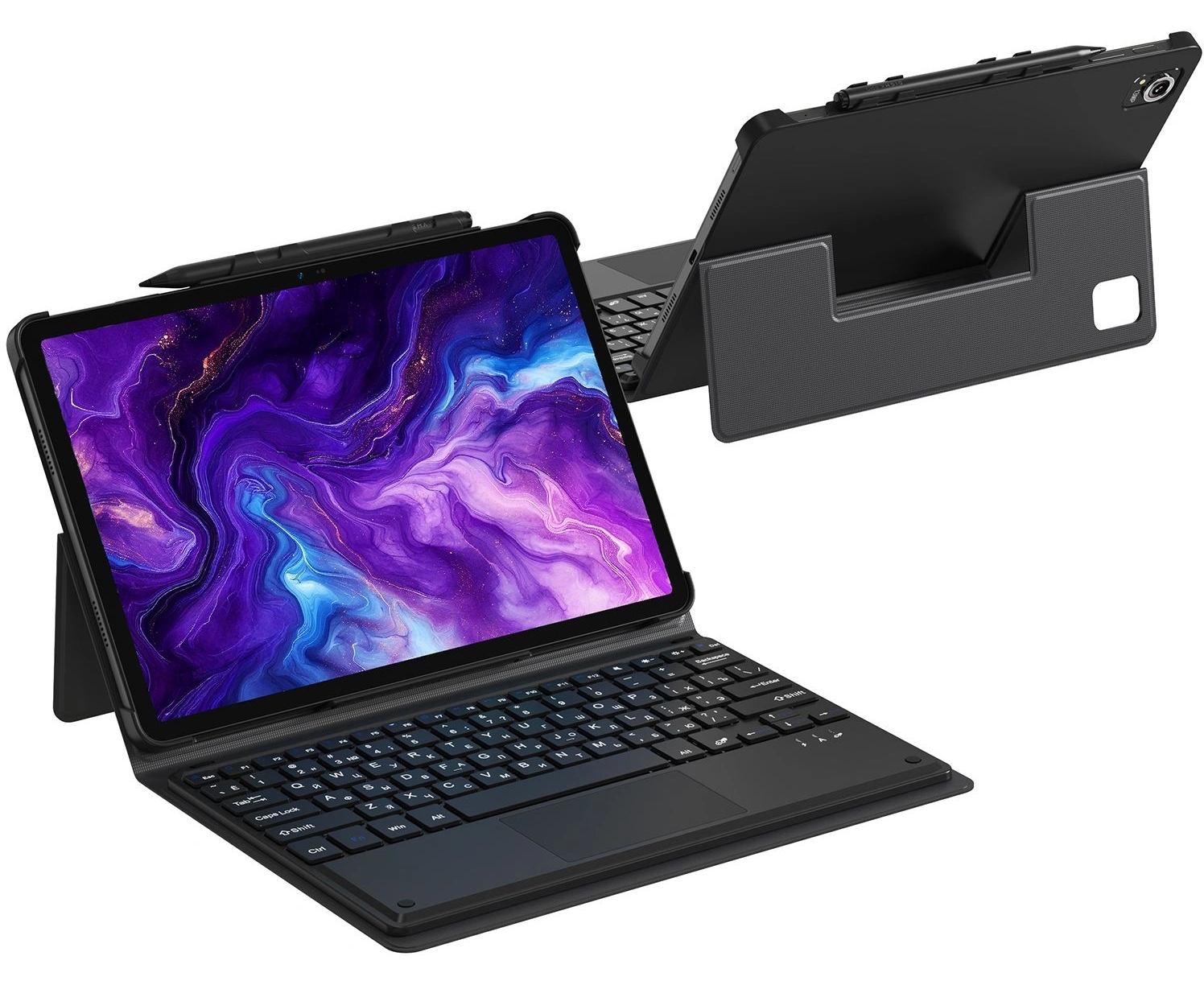 Сетевой адаптер питания; USB-C кабель; активный стилус; набор наклеек; салфетка для экрана; скрепка для извлечения SIM-карты; клавиатура; защитный чехол
