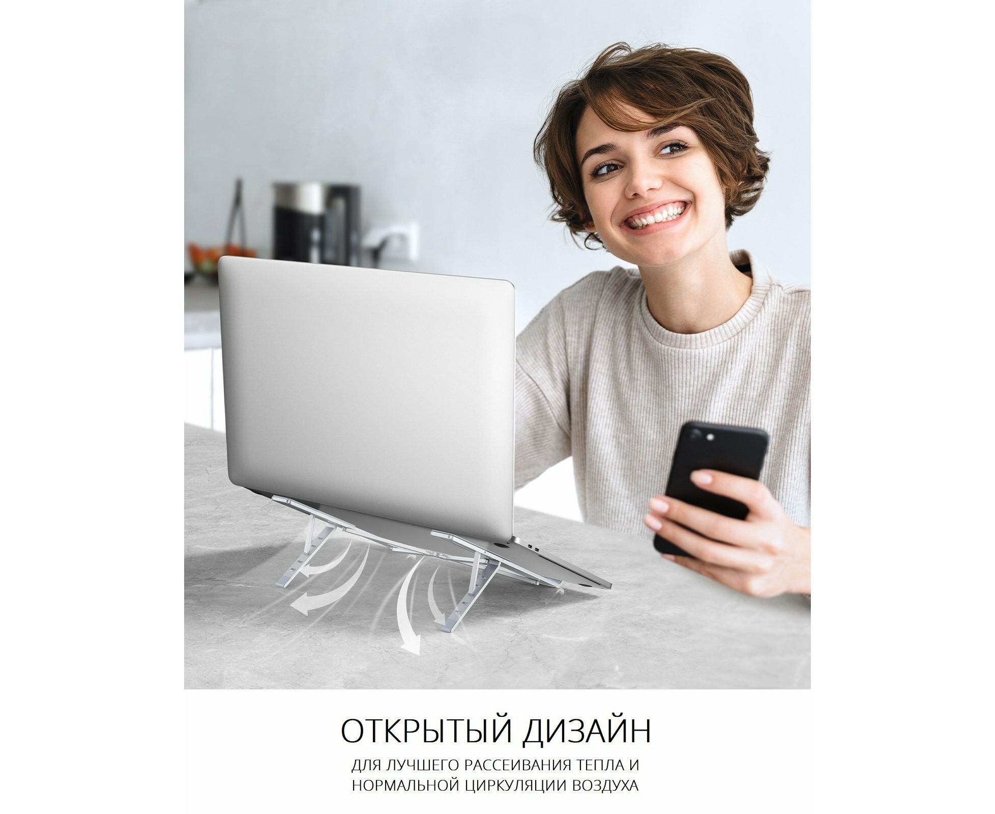 Полая конструкция и угол наклона этой подставки обеспечивают отличный отвод тепла и естественный поток воздуха, предотвращая перегрев ноутбука.