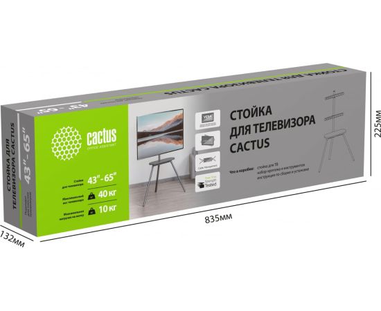 Подставка для телевизора CACTUS CS-ST2844GY представляет собой надежное и стильное решение для размещения телевизоров с диагональю от 43 до 65 дюймов. Изготовленная из комбинации дерева и металла, она обеспечивает прочность и долговечность конструкции, выдерживая вес до 40 кг. Темно-серый цвет подставки гармонично вписывается в любой интерьер, добавляя ему элегантности. Габариты изделия составляют 883х545х1395 мм, что делает его подходящим для размещения в различных помещениях. Треугольная форма подставки обеспечивает устойчивость и экономию пространства. Классический стиль исполнения позволяет использовать подставку в различных интерьерных решениях, от современных до более традиционных.
