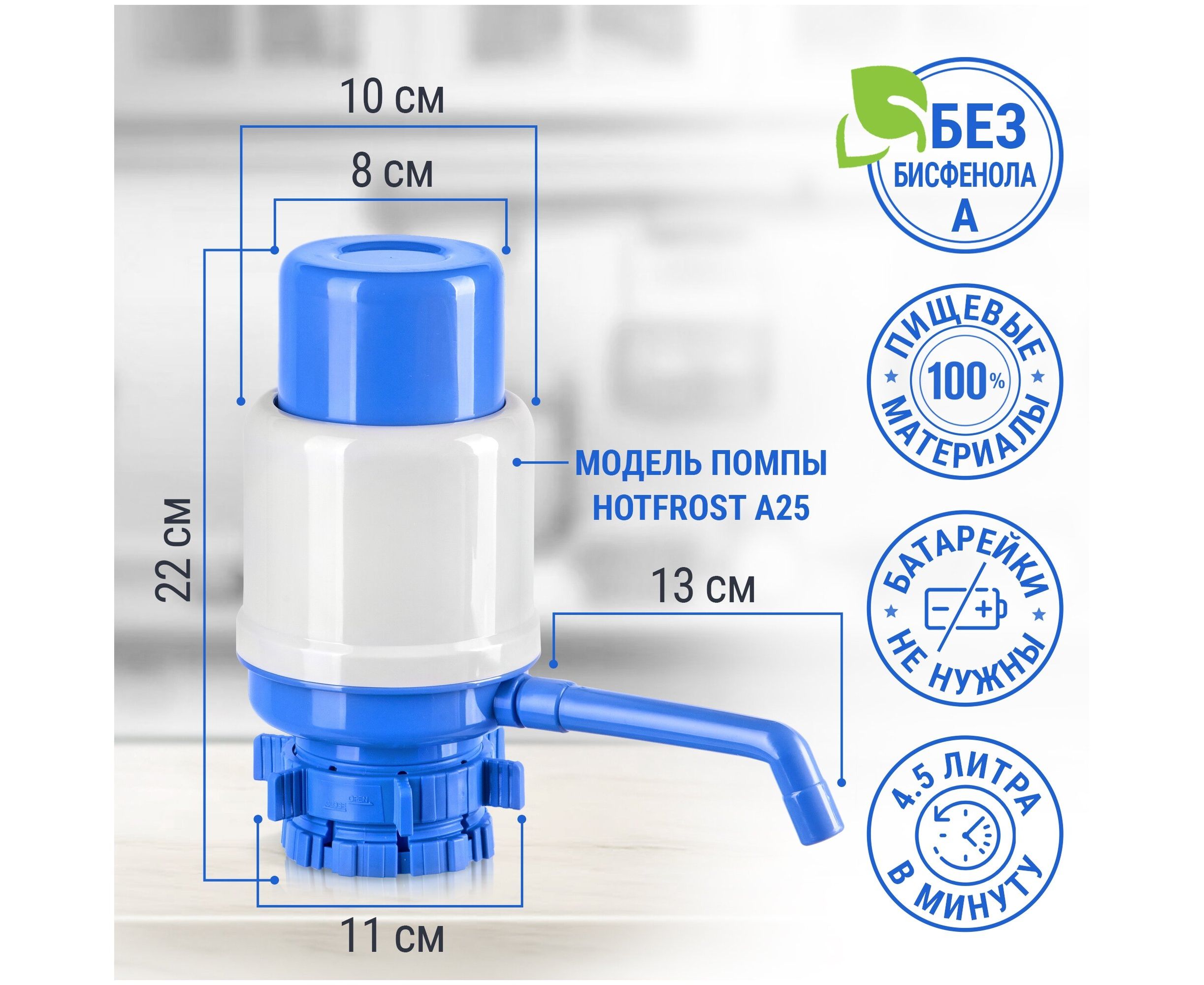 Помпа Hotfrost A25 (230402502) для 19л бутыли механический серый/синий картон