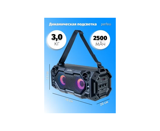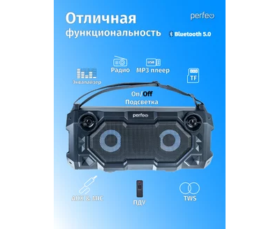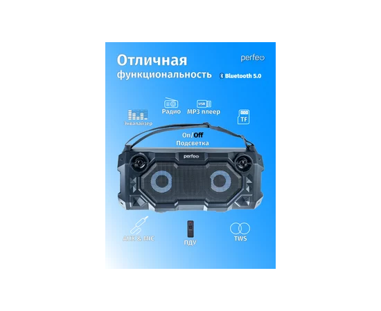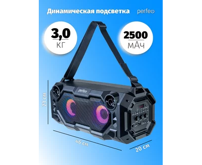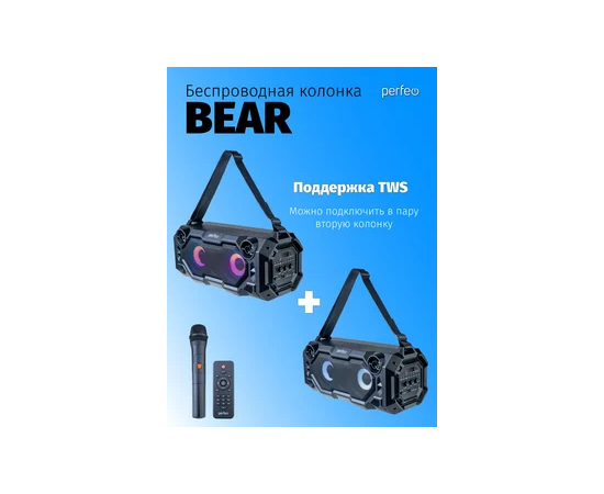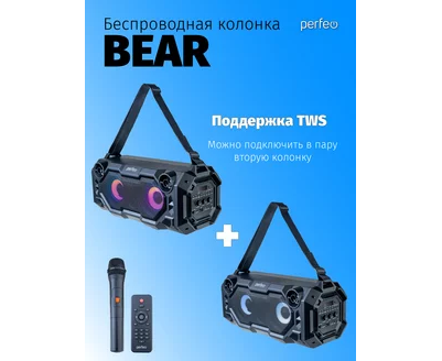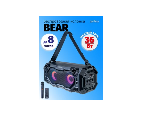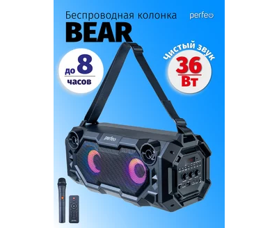 Портативная акустическая система Perfeo ”BEAR” 36W EQ, беспроводной микрофон в комплекте, MP3 USB-microSD, AUX, FM, JACK, TWS, (Арт. PF_D0020)