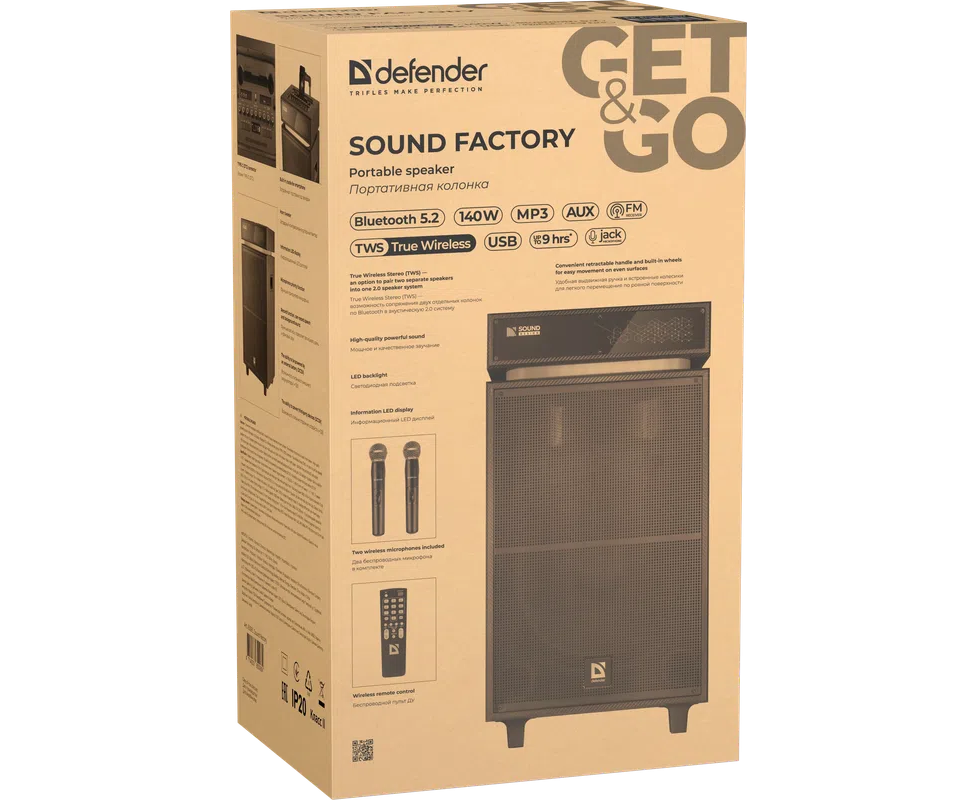 Портативная колонка DEFENDER Sound Factory 140Вт, BT/USB/TF/FM/15"/wooden 65093