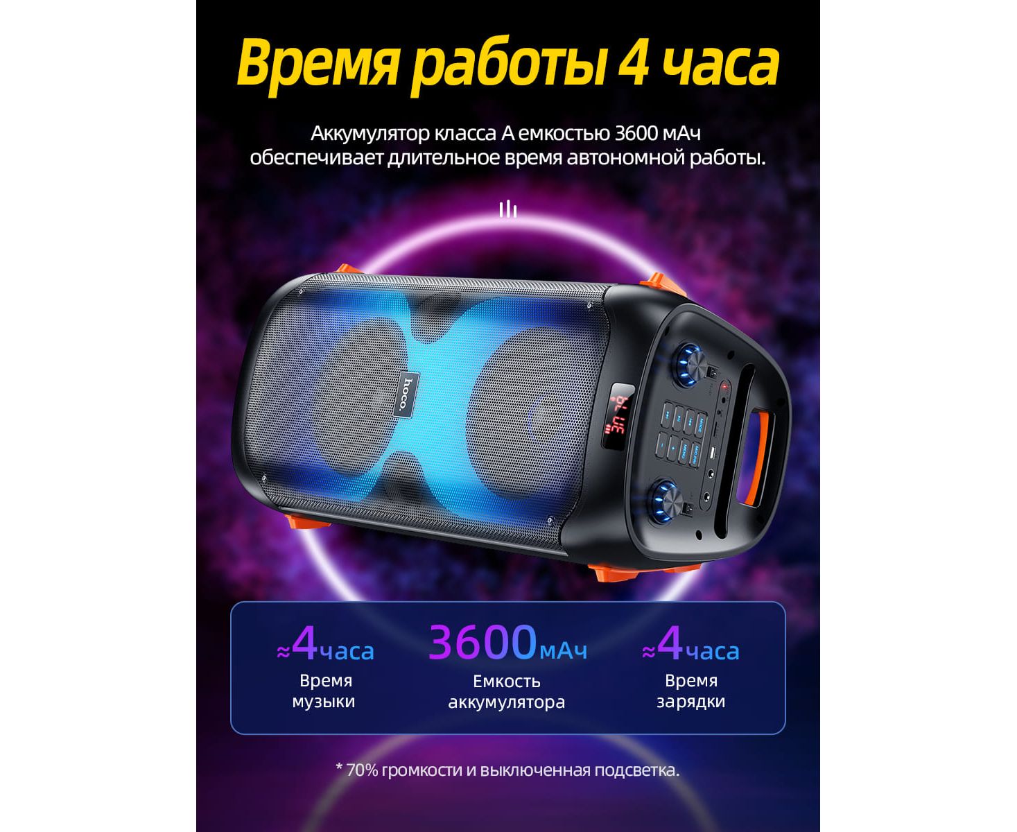 Емкость аккумулятора: 3600 мАч, зарядка около 4 часов.