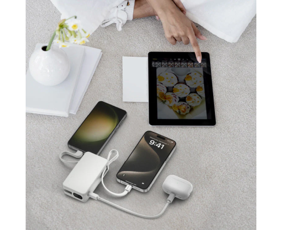 Комплектация 1-Power Vital+ Power Bank 10000 мАч с 2 встроенными кабелями USB-C, инструкция по эксплуатации и гарантийный талон
