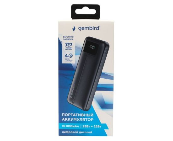 Портативный аккумулятор Gembird GPB-10Q 10000мАч, QC/PD, дисплей, черный