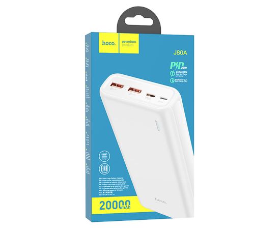 Портативный аккумулятор HOCO J80A Premium 22.5W, 3A, 20000 мА⋅ч, белый
