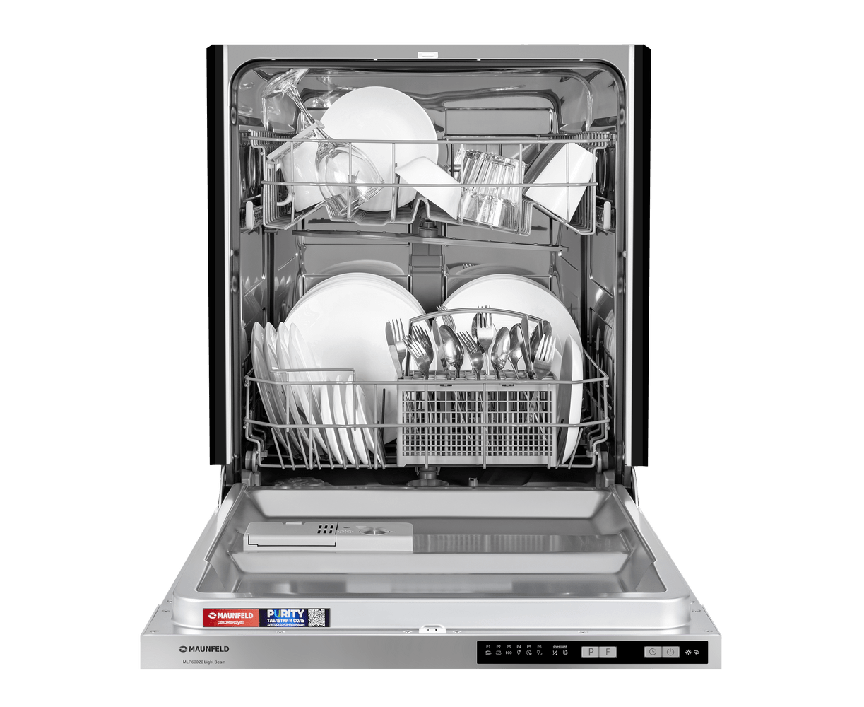 MAUNFELD MLP60020 Light Beam — полноразмерная встраиваемая посудомоечная машина, которая избавит вас от необходимости мыть посуду вручную . Вместимость — до 12 комплектов посуды. За раз можно помыть сразу много посуды — это оценят большие семьи и те, кто любит готовить или часто принимает гостей. В машине максимально эффективно организовано внутреннее пространство. Есть удобная корзина для столовых приборов и мелкой утвари. Верхняя корзина — с изменяемой высотой установки, чтобы можно было мыть посуду разного размера и объёмов. В верхней корзине есть складные держатели для бокалов — дополнительное важное удобство. Предусмотрены несколько программ мытья для посуды разной степени загрязнения. Посудомоечная машина MAUNFELD MLP60020 Light Beam— помоет посуду без вашего участия, освобождая время для более приятных занятий.