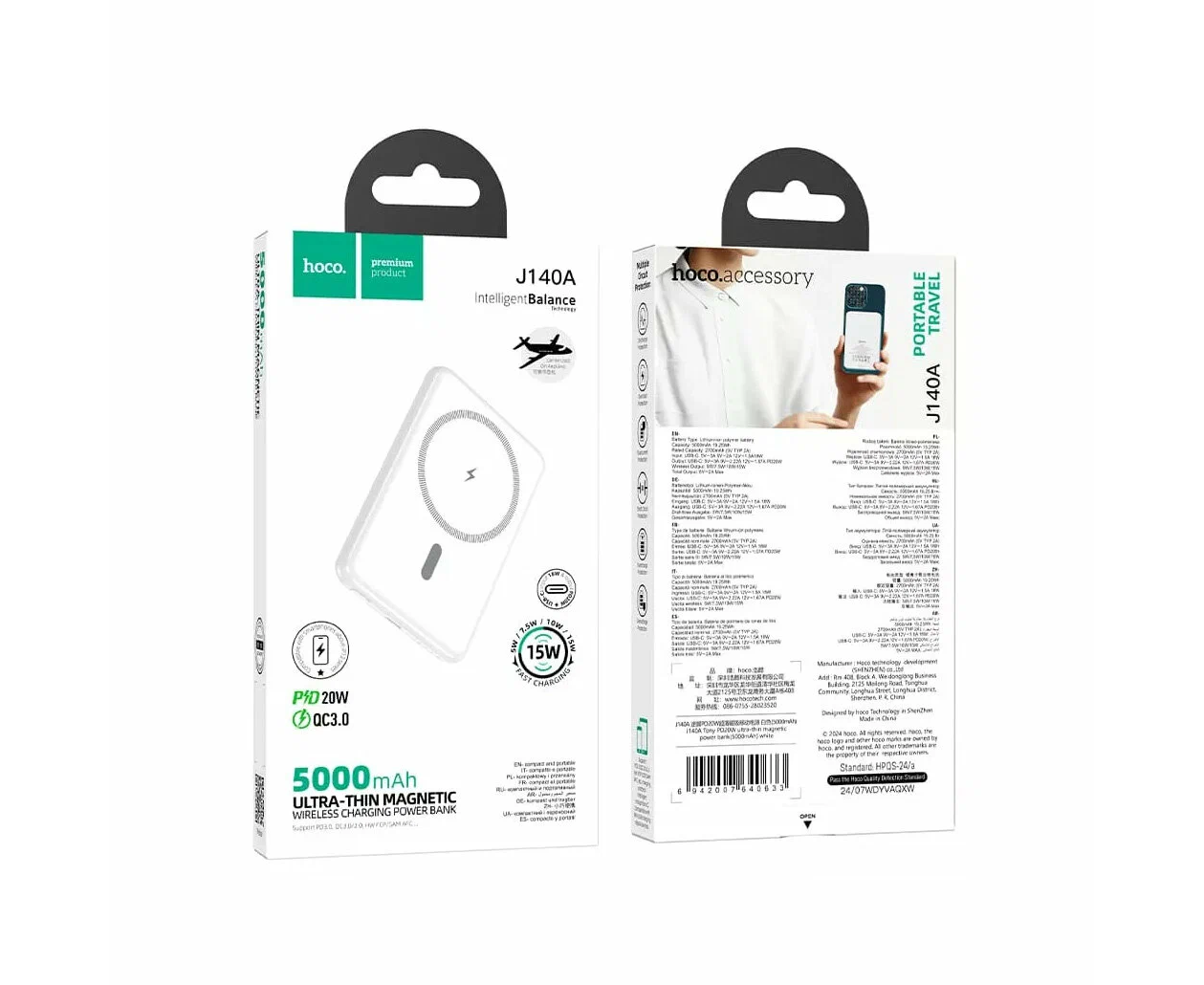 Power bank HOCO J140A Tony PD20W ultra-thin magnetic 5000mAh White