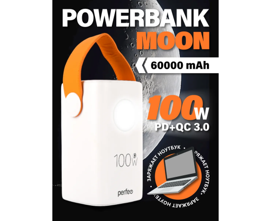 Powerbank Perfeo PF_E2293 Moon 100W 60000 mAh/LED дисплей/PD+QC 3.0/2Type-C/3 USB/max 100W/White