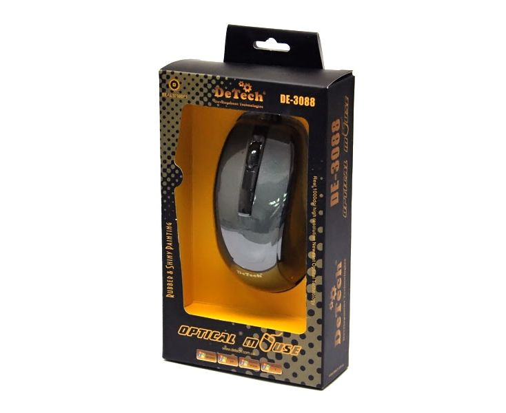 Проводная оптическая Мышь:DeTech DE-3088-S RubberGray&Shiny Gray