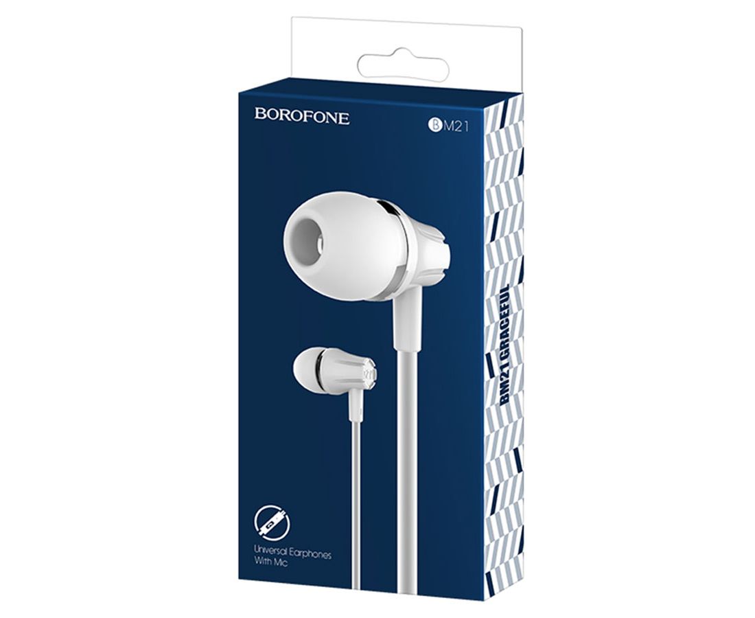 Проводные наушники BOROFONE BM21 Graceful, Jack 3.5mm, 1.2 м, белый