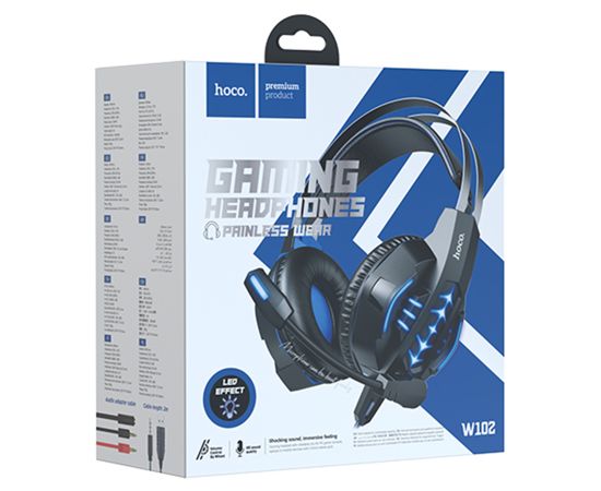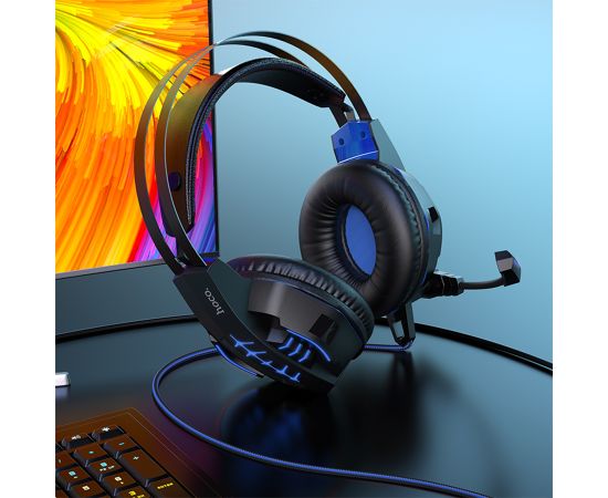 Проводные наушники HOCO W102 Cool tour gaming, USB+Jack 3.5mm, синий
