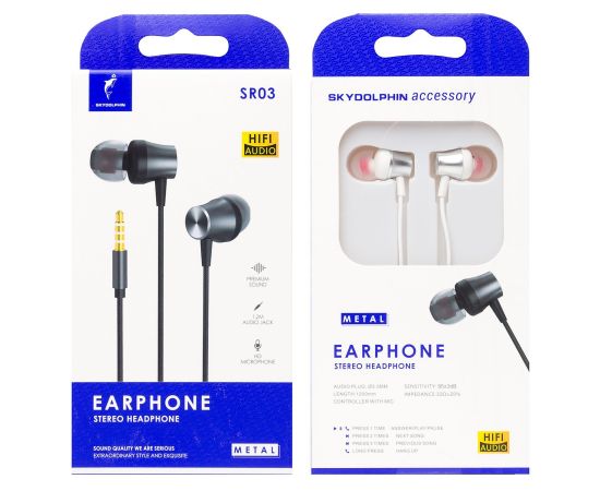 Проводные наушники с микрофоном внутриканальные SKYDOLPHIN SR03 Jack 3,5 (silver) (206546)