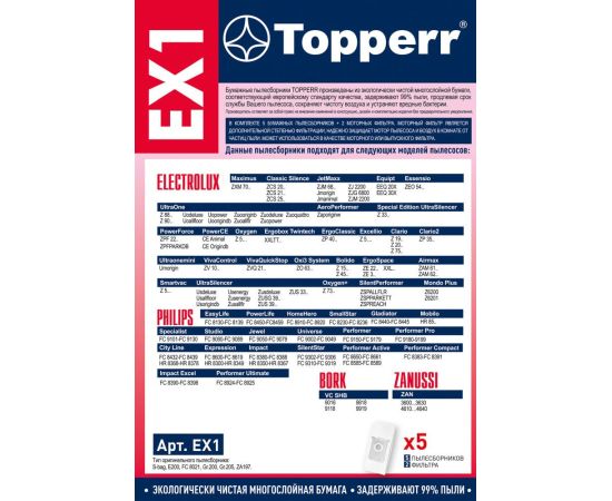 Пылесборники Topperr EX 1 бумажные (5пылесбор.) (2фильт.)