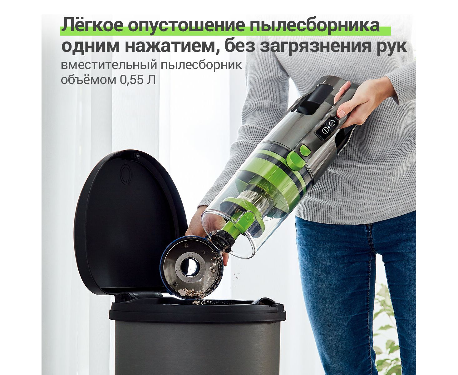 Для удобства использования пылесос был изготовлен с учетом эргономичного дизайна и облегченной конструкции, вес и длина пылесборника могут поворачиваться на 360°, что позволяет не уставать даже во время длительной уборки.