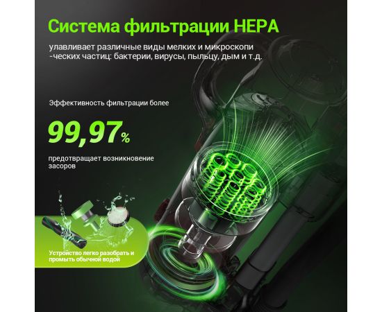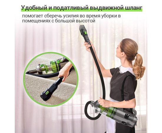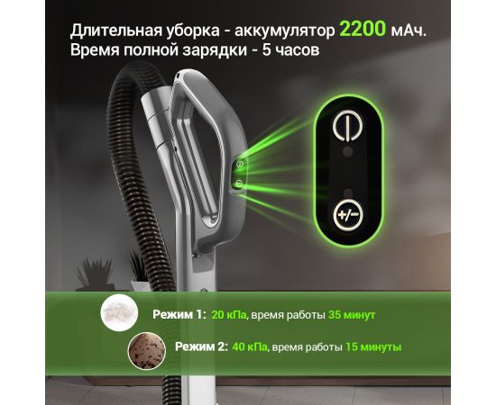 Аккумуляторный пылесос KaringBee V100 сочетает в себе мощность и удобство, позволяя легко убирать в любом месте вашего дома. Оснащенный емким аккумулятором 2200 мАч, он имеет длительное время автономной работы, что позволяет без проблем убирать большие площади. Благодаря отсутствию шнура вы можете свободно перемещаться по всем комнатам, не беспокоясь о длине шнура или поиске розетки.